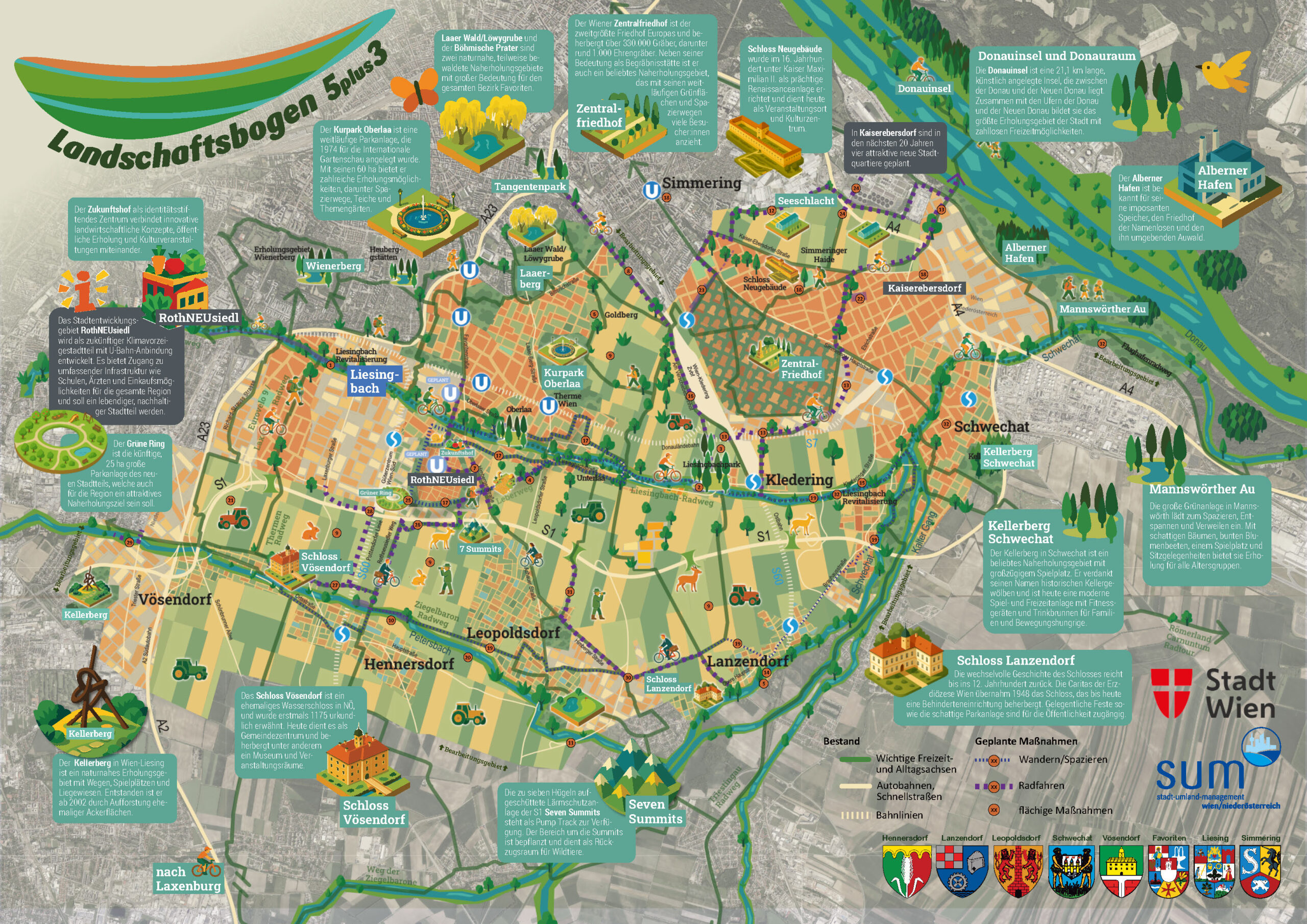 Ziel sind der Erhalt und die Aufwertung der Landschaftsfunktionen und naturräumlichen Qualitäten im Kontext einer zu erwartenden Bevölkerungszunahme mit dem zentralen Entwicklungsschwerpunkt Rothneusiedl. Das Projekt ist damit eine direkte Umsetzung des ebenfalls von Knollconsult erstellten, ersten Stadtteilentwicklungskonzepts Wiens „Südraum Favoriten“.