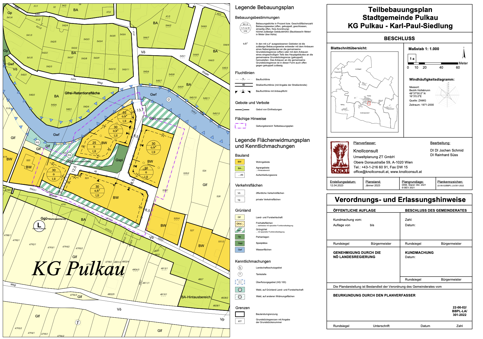 Durch die Erstellung eines Bebauungsplanes können die Gemeinden die zukünftige Entwicklung von Dorf- und Stadtteilen etwa durch die Festlegung von Bebauungsdichten, -weisen, und höhen, wesentlich beeinflussen. Der Bebauungsplan bietet eine breite Palette an Inhalten, um zum Beispiel die bestehende Bebauungsstruktur zu schützen oder neue Wege in der baulichen Entwicklung zu gehen. Durch langjährige Erfahrung kennt Knollconsult die vielfältigen Steuerungsmöglichkeiten eines Bebauungsplanes genau und versteht, diese gezielt für eine nachhaltige Siedlungsentwicklung der Gemeinde einzusetzen.