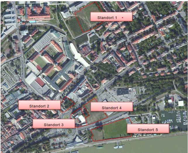 Übersicht über Standortalternativen für die NÖ Landesgalerie, Stadt Krems (Bildrechte: Knollconsult Umweltplanung ZT GmbH)
